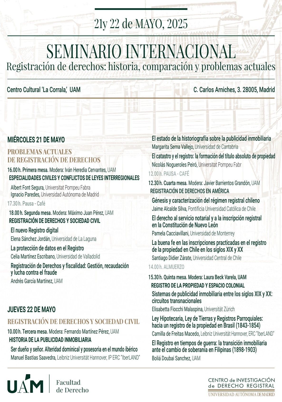 Seminario Internacional Registración de derechos: historia, comparación y problemas actuales, Centro Cultural ‘La Corrala,’ Universidad Autónoma de Madrid, Madrid, Spain