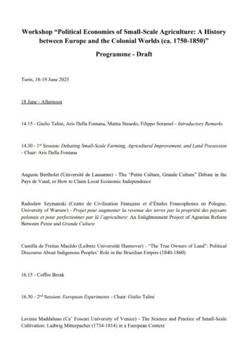 Workshop Political Economies of Small-Scale Agriculture: A History between Europe and the Colonial Worlds (ca. 1750-1850), University of Turin, Italy